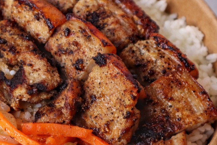 Filipino-style grilled chicken marinated with vinegar, lemon, garlic, ginger, and lemongrass.